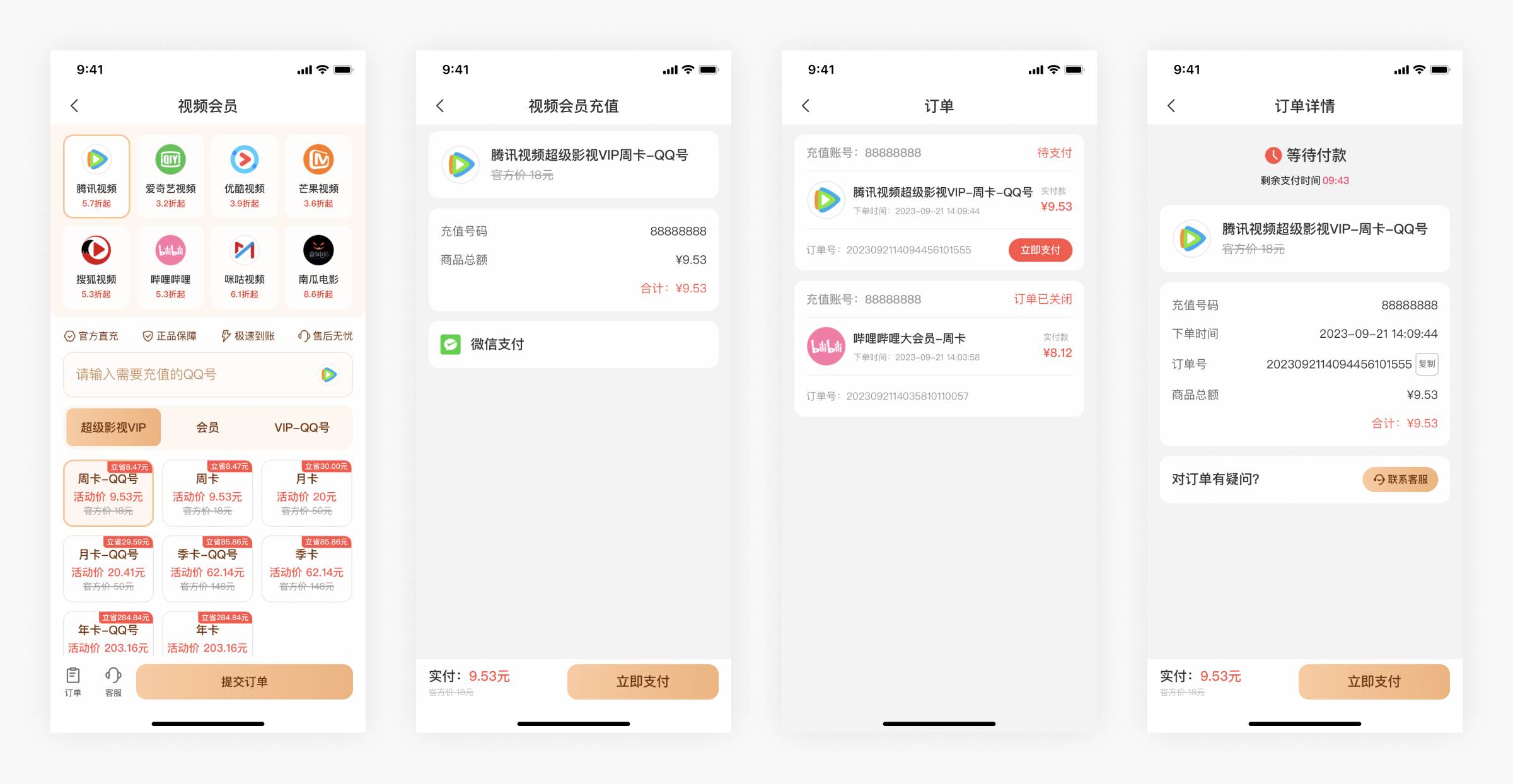 提供各大视频网站的会员充值。包括腾讯视频、优酷、爱奇艺、乐视、搜狐、芒果TV、西瓜、B站等