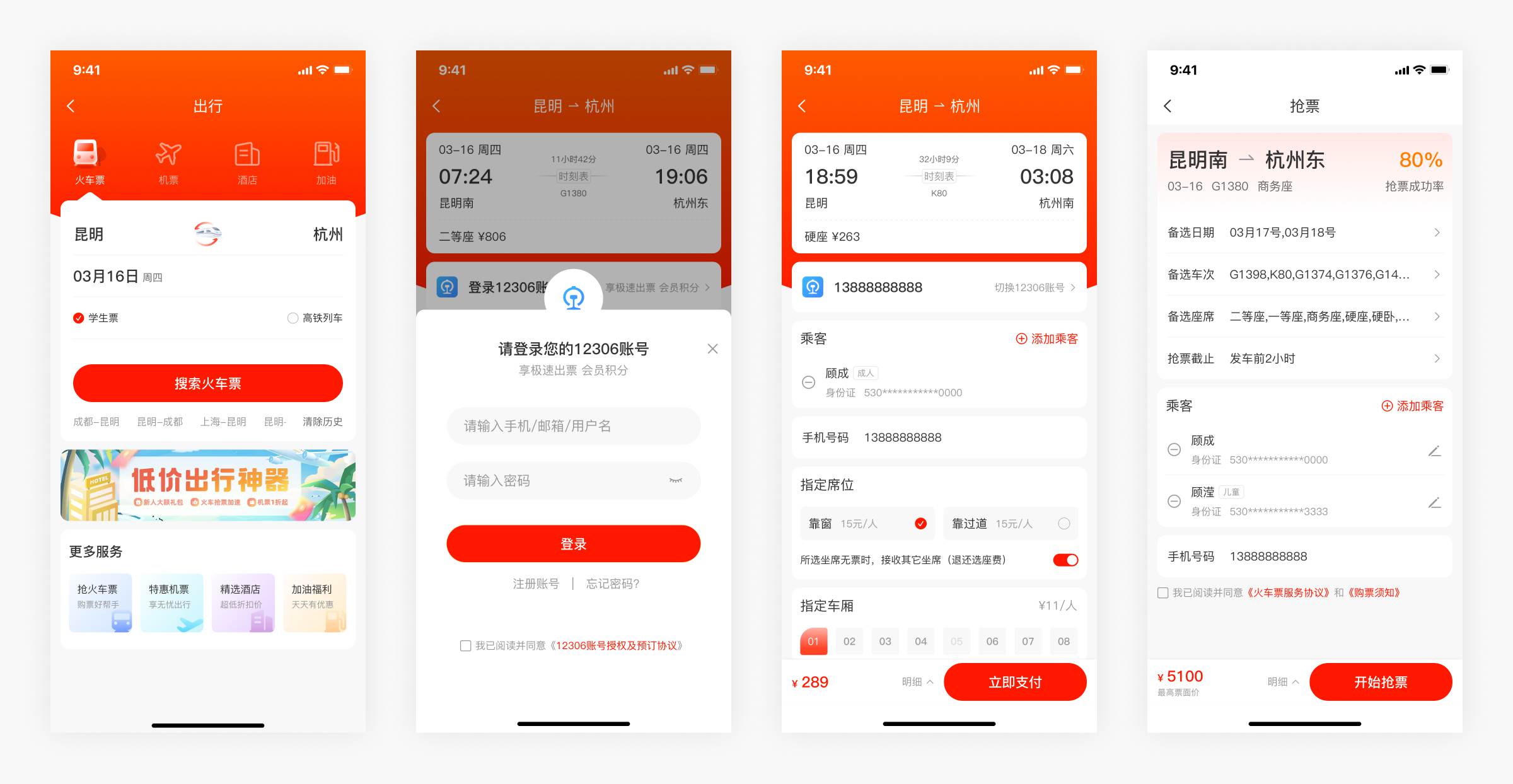 同步12306官网,通过官方极速购票,查询,出票、改签退票一体化服务